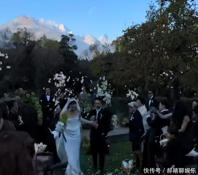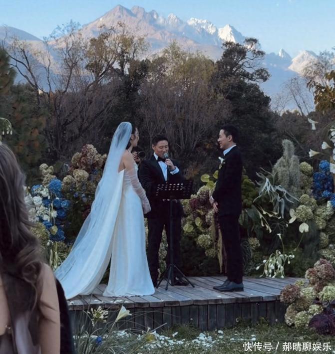 两人早就领了证,婚礼选在玉龙雪山脚下,这样的大自然景色,比那些豪华的酒店更浪漫,寓意他们的爱情像雪山一样纯洁,像高山一样坚稳,经过时间的考验不会变。